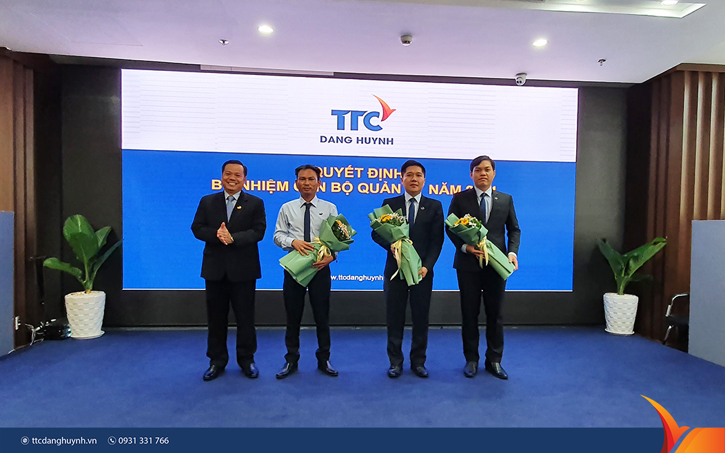 Ông Nguyễn Thành Chương – Giám đốc Công ty trao hoa cho các Cán bộ Quản lý được bổ nhiệm năm 2021