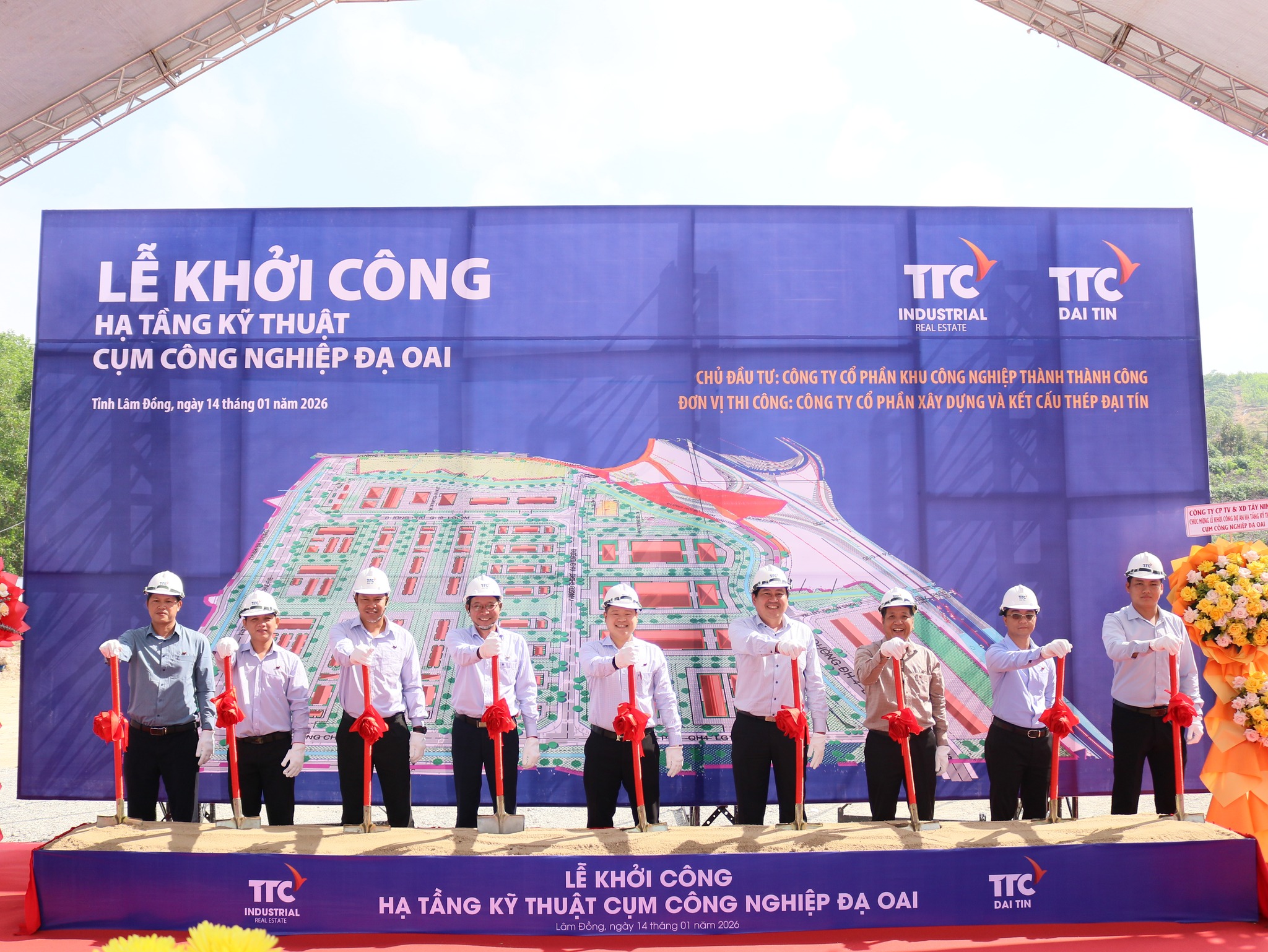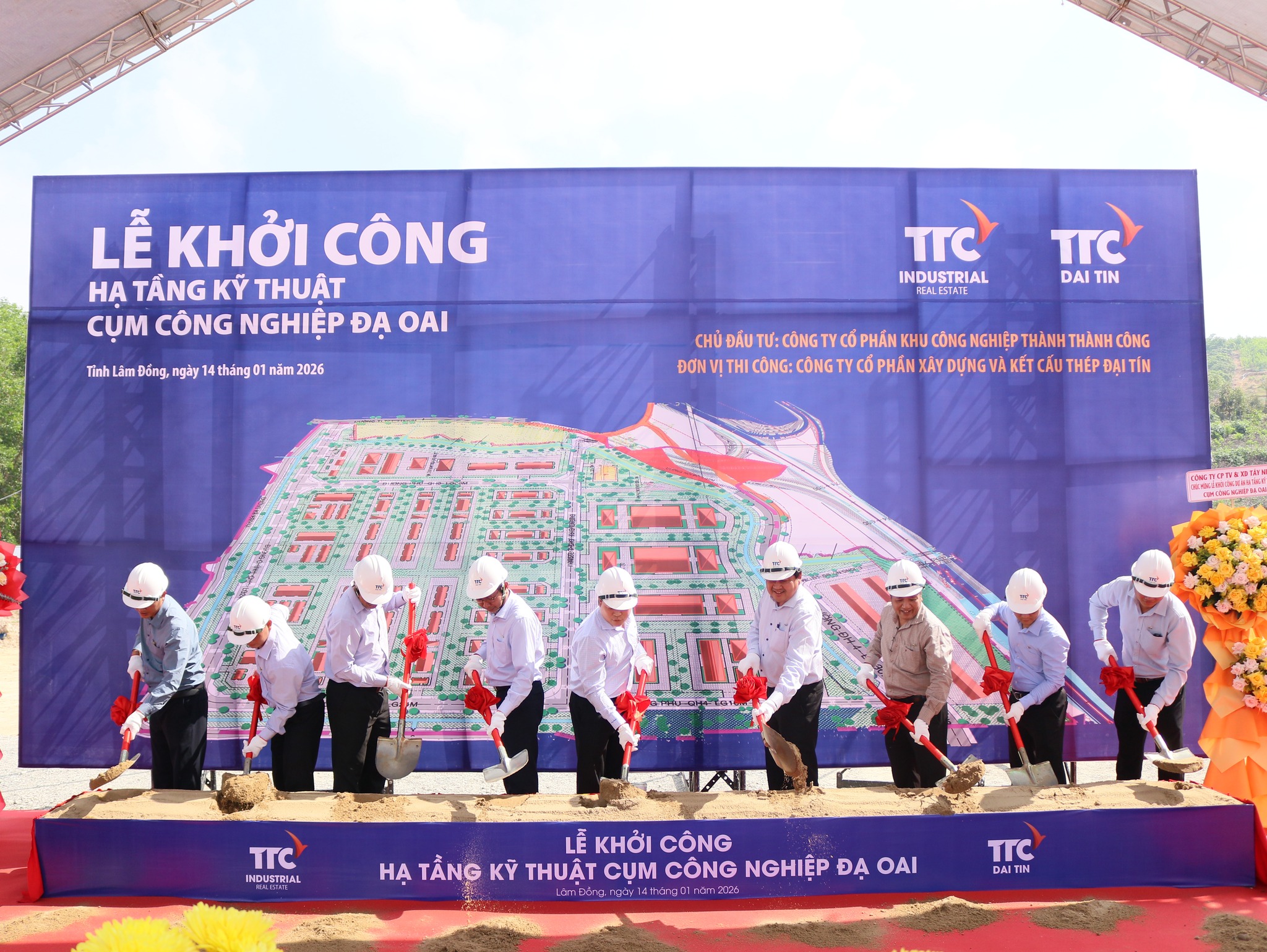 Sáng ngày 14/01/2026, tại xã Đạ Huoai, tỉnh Lâm Đồng, TTC IZ phối hợp cùng TTC Đại Tín đã long trọng tổ chức Lễ Khởi công Hạ tầng kỹ thuật Cụm công nghiệp (CCN) Đạ Oai. Sự kiện đánh dấu bước khởi đầu quan trọng trong chiến lược mở rộng hệ sinh thái công nghiệp của TTC IZ.