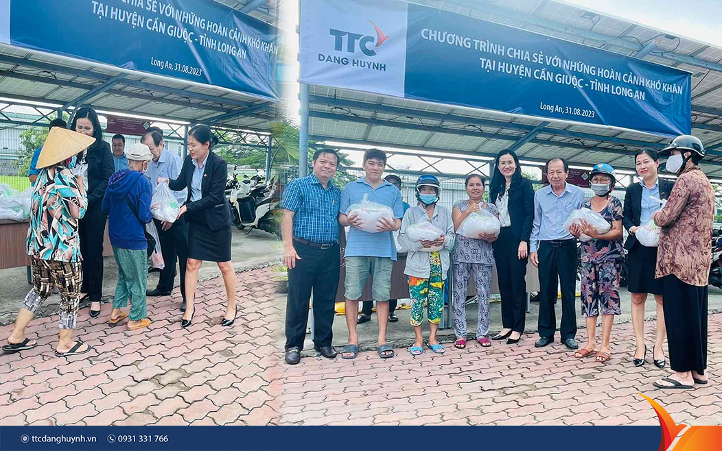 Thấu hiểu được sự khó khăn này, Công ty Cổ phần Khai thác và Quản lý Khu công nghiệp Đặng Huỳnh (TTC Đặng Huỳnh) đã tổ chức Chương trình tặng quà “Chia sẻ với những hoàn cảnh khó khăn” được diễn ra vào sáng ngày 31.08.2023 tại Khu công nghiệp Tân Kim Mở rộng thuộc Thị trấn Cần Giuộc, Huyện Cần Giuộc, Tỉnh Long An. Hoạt động chung tay hỗ trợ các bà con có hoàn cảnh khó khăn, neo đơn là hoạt động thường niên của TTC Đặng Huỳnh nói riêng cũng như Tập đoàn TTC nói chung.