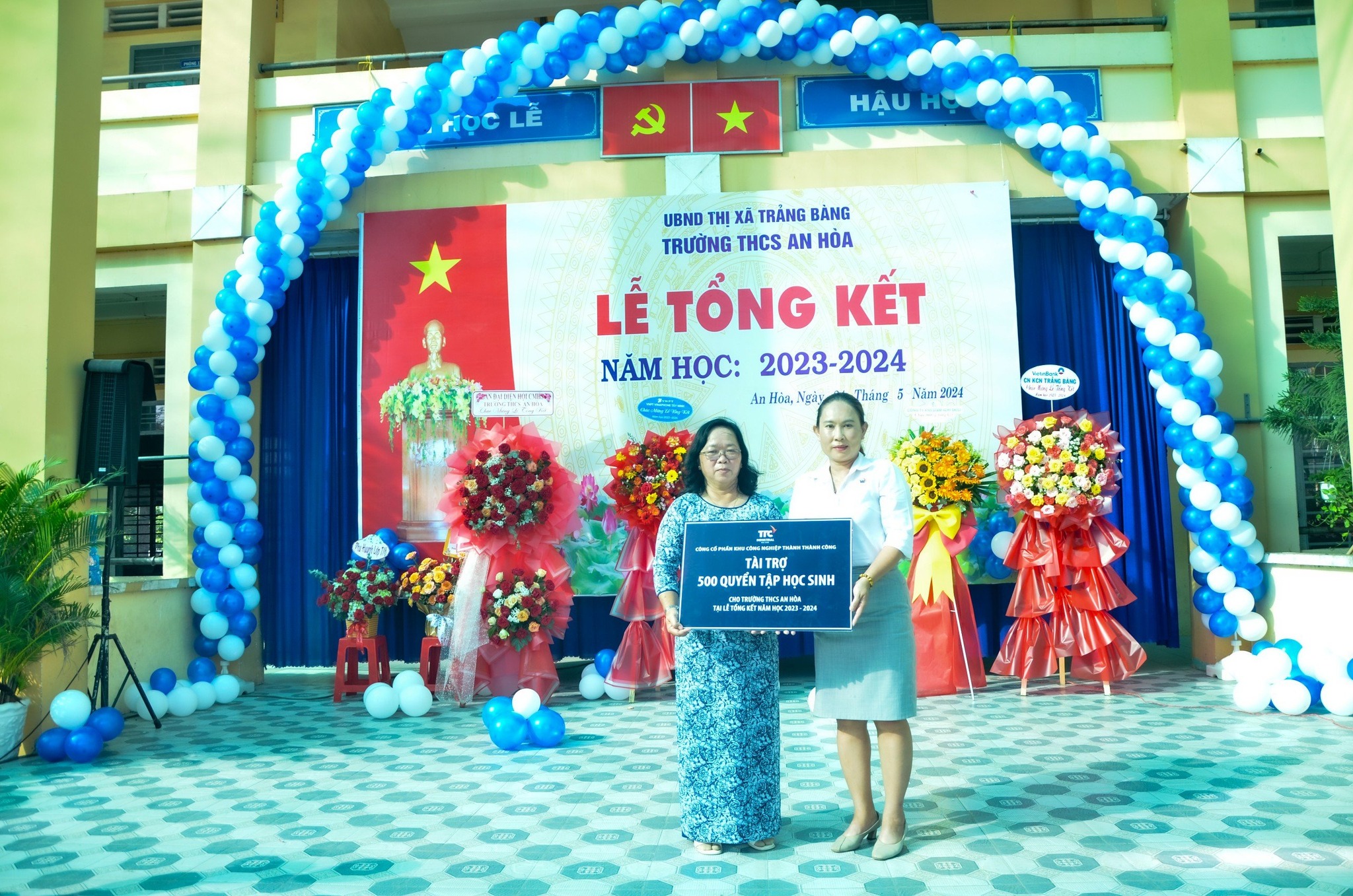 Tại chương trình, TTC IR đã trao tặng 1.000 quyển tập đến Trường Tiểu học Vàm Trảng và Trường THCS An Hòa. Những món quà tuy nhỏ nhưng mang ý nghĩa nhân văn sâu sắc, thể hiện tinh thần tương thân tương ái và trách nhiệm xã hội của toàn thể CBNV TTC IR vào sự phát triển bền vững của xã hội.